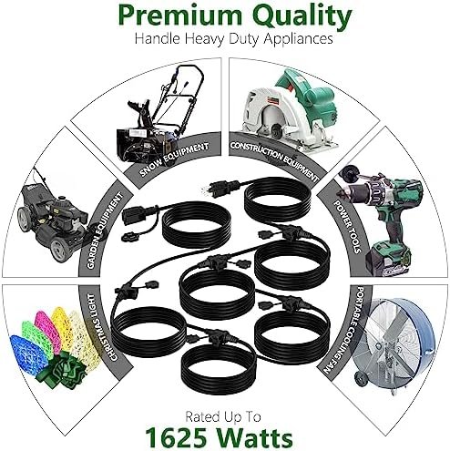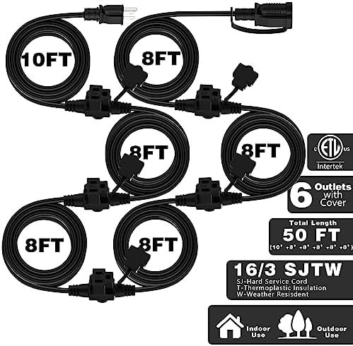 - Certified to ETL – made of durable 16 AWG heavy duty extension cables and 6-prong grounded plug.
