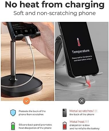 • USER-FRIENDLY DESIGN: [No bent & tangling & tip over worries] when using while charging. Due to bent cable, the low phone dock maybe fall over. LISEN stylish adjustable phone holder for desk has a reserved charging hole design, supports cable management, [No bent & tangling & tip over worries]. This phone pad will not cover the subtitle when you watch the video