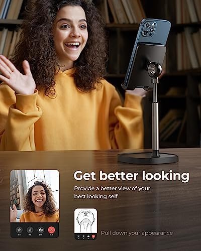 • WEIGHTED ANTI-SLIP BASE: This cell phone stand for desk is equipped with a weighted base and an aluminum alloy rod. Therefore, this iPhone stand holder is stable enough to support all smartphones or small tablets, such as 2023 iPad Mini, iPhone 15 14 pro max 13 Pro/13 Mini/12/12 Pro/12 Pro Max/12 Mini/iPhone 11/11 Pro/Max/X/MAX/XR/8/8P, Samsung Galaxy S22, S22, Note 10/9/8/Plus, S10/S9/S8, Kindel, Switch, iPad Mini,iPad Air, etc.We recommend the most stable compatible device size is 4-10 inchs
