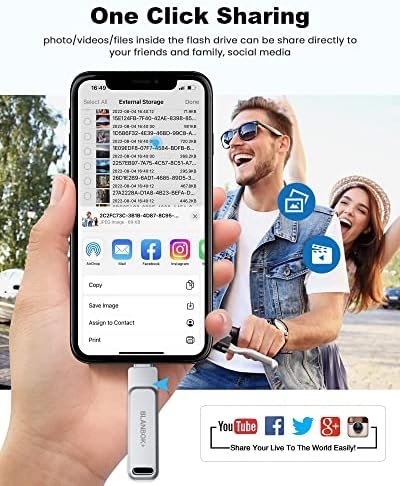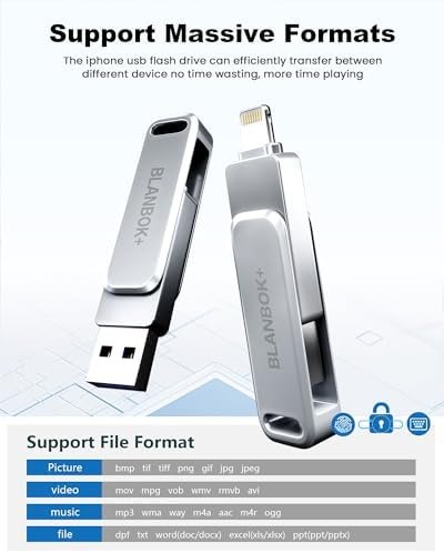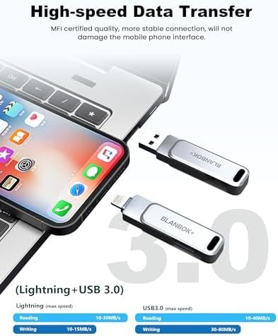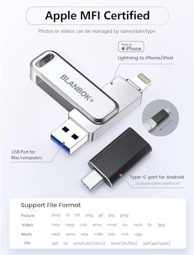 MFi Certified 128GB Flash Drive for iPhone/USB/USB C/,3-in-1 USB Stick