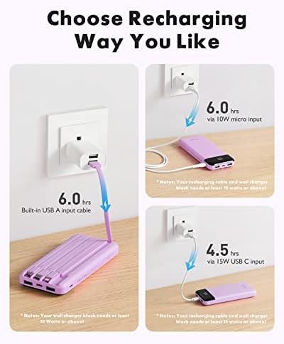 Portable Charger with Built in Cables, Portable Charger with Cords Wires Slim