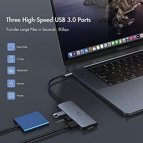 • 3 Super Speed USB 3.0 Ports: This USB C Macbook Air Dongle comes with three super speed usb 3.0 ports transfer data up to 5Gbps, support usb keyboard, mouse, usb driver, usb hard disks.